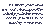 Next, clean the mouse or trackball exterior and cord with a cloth